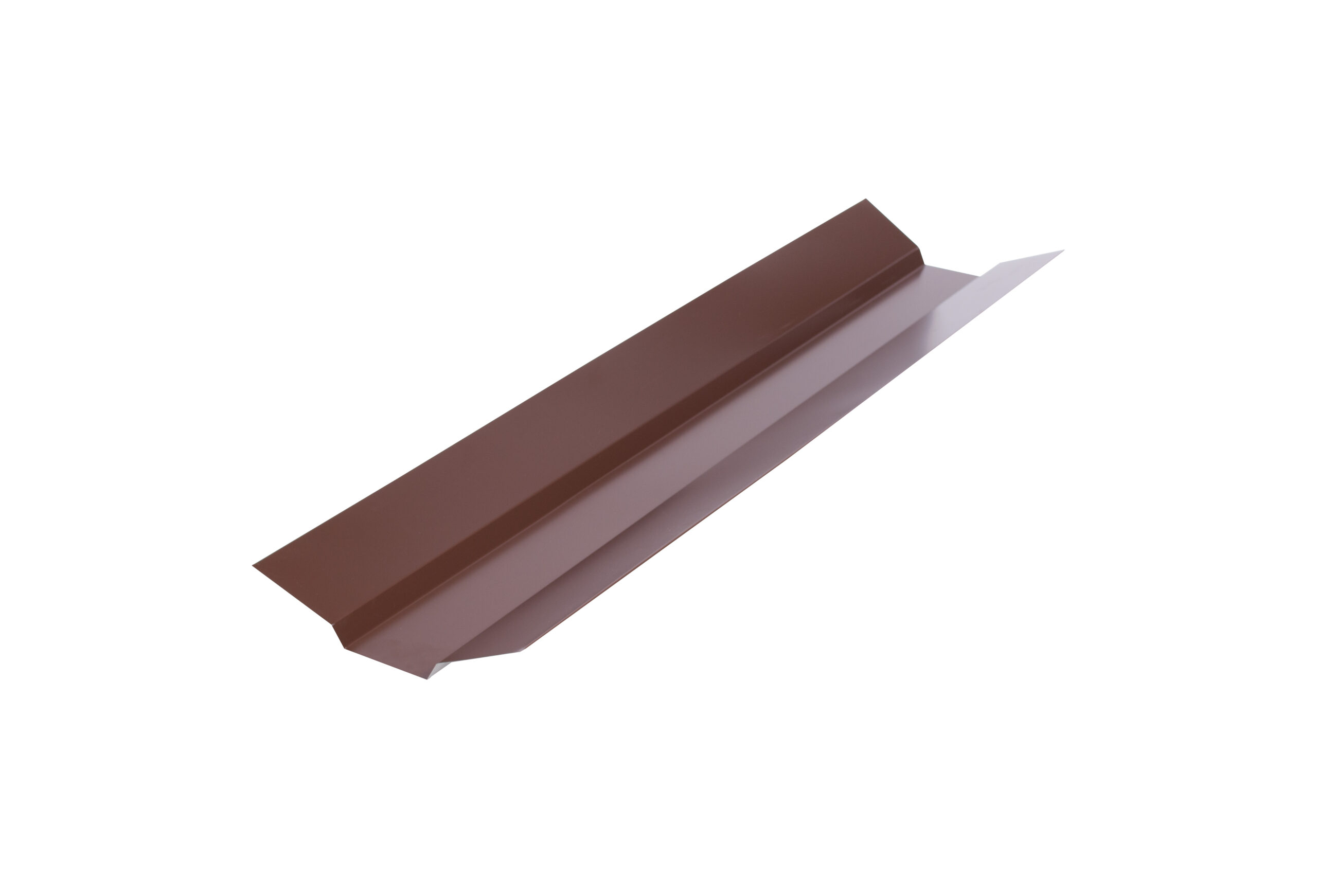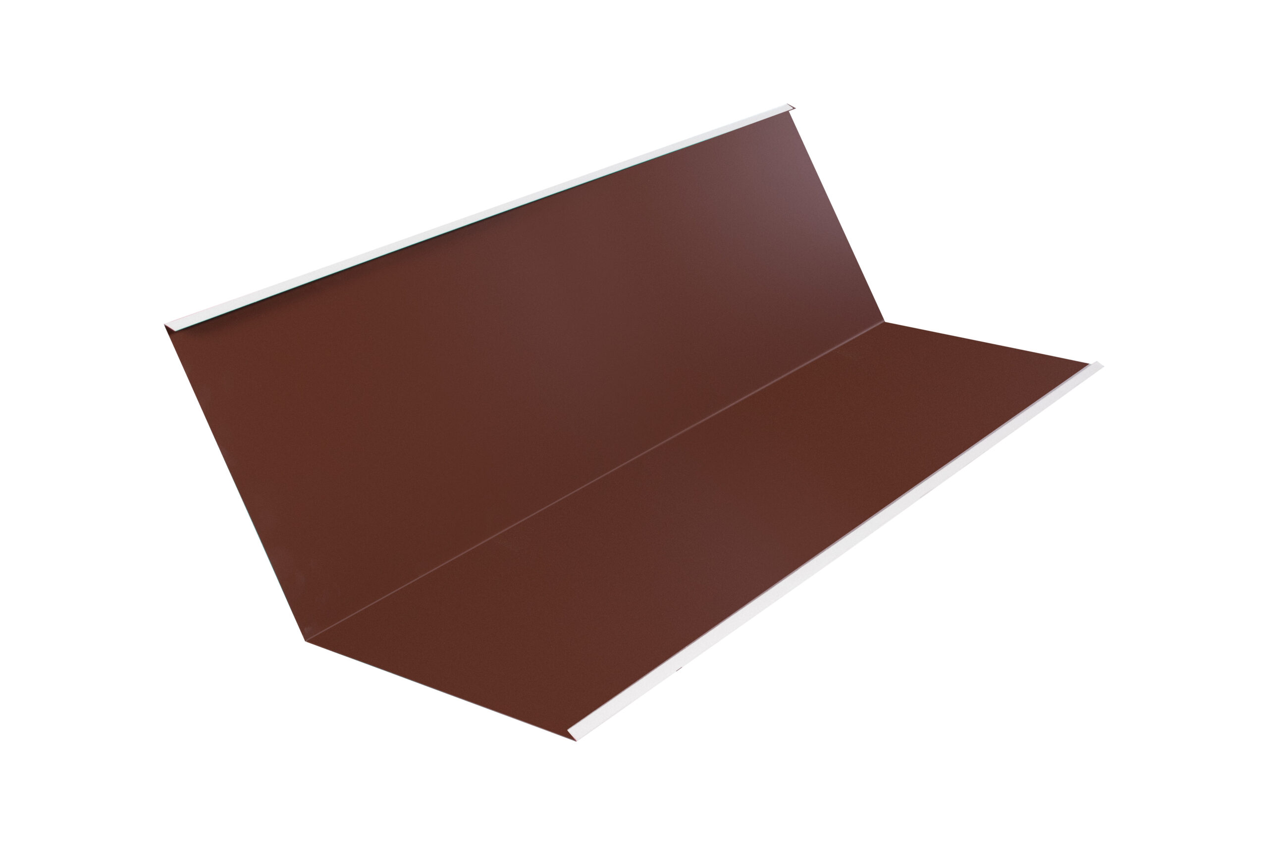 Верхняя ендова используется на внутренних переломах кровли. Устанавливается в местах стыка поверх двух листов профнастила или элементов металлочерепицы. Прикрывает собой неэстетичные щели, защищая подкровельное пространство.