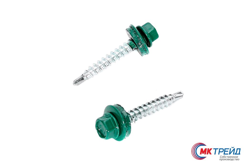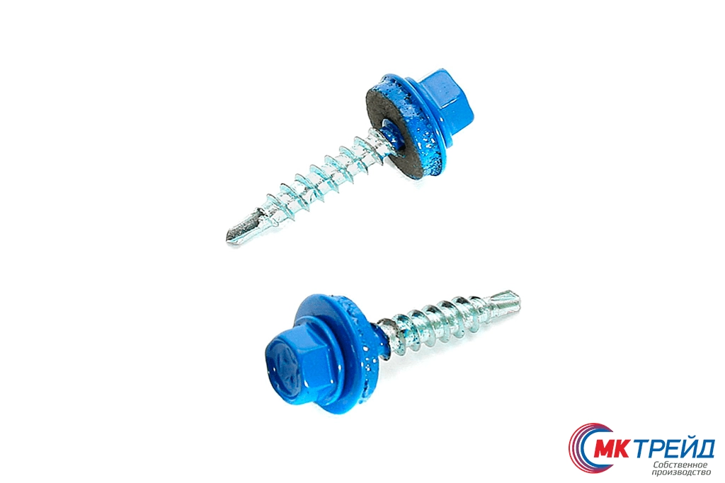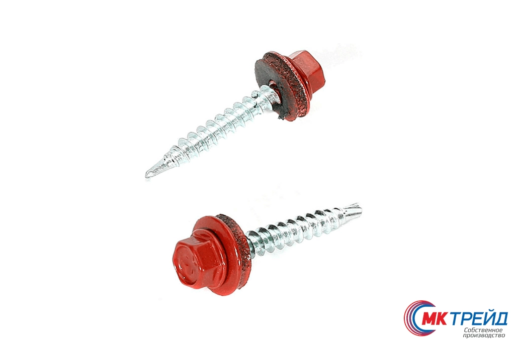 Изготовлены из оцинкованной стали. Шестигранная головка с шайбой и резиновой прокладкой, наконечник-сверло.