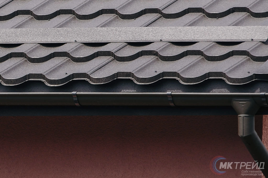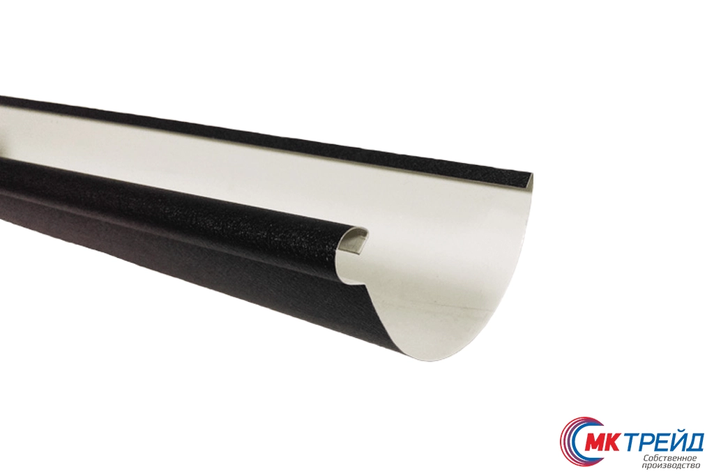Водосточный желоб имеет уникальную в своем роде конструкцию. Наружный продольный край желоба, имеет расширенный загиб, являющийся одновременно дополнительным ограничителем перелива воды во время интенсивных осадков, а так же предает дополнительную жесткость конструкции, предохраняя ее от прогибов и деформаций во время монтажа и эксплуатации, гарантируя высокую точность и герметичность.