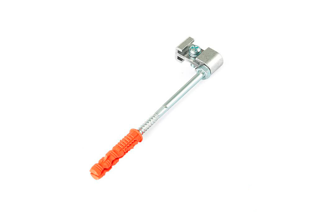 Необходим для соединения хомутов с фасадом здания, имеет соединительную часть особой конструкции для потайного соединения с хомутом, с одной стороны, и дюбель резьбовое соединение, с другой стороны.