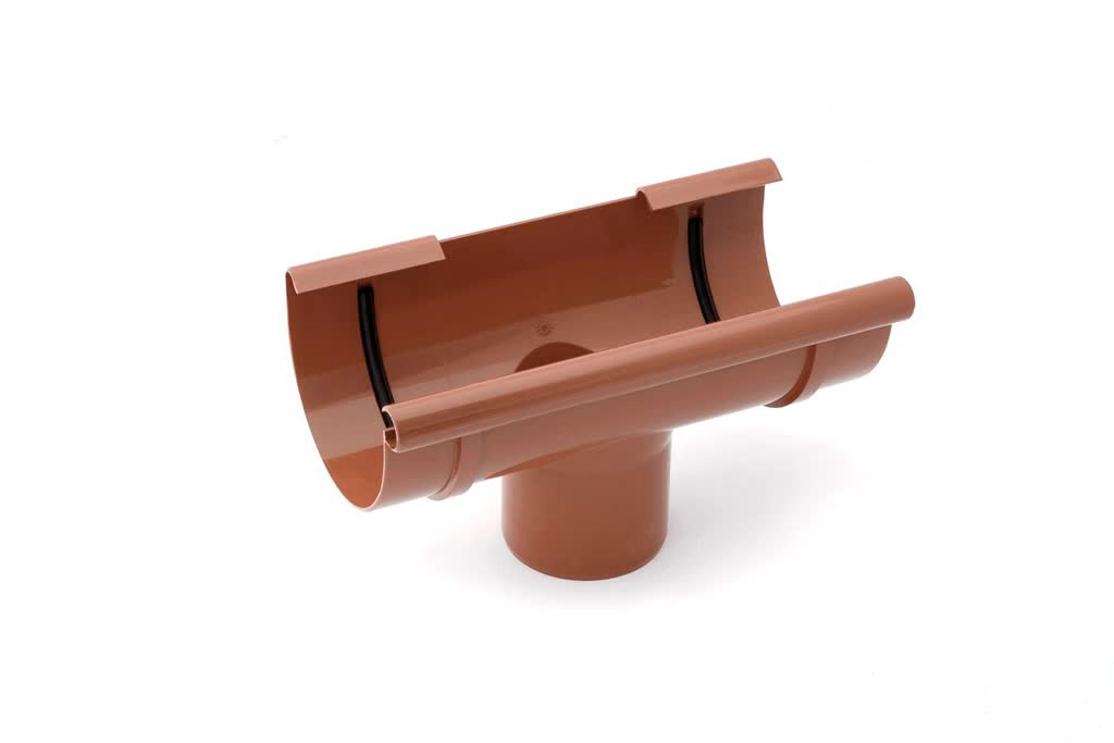 Имеет полукруглую форму, меняет направление потока воды из желобов в сторону сливной трубы, также имеет резиновые уплотнители для герметичного соединения с желобами.
