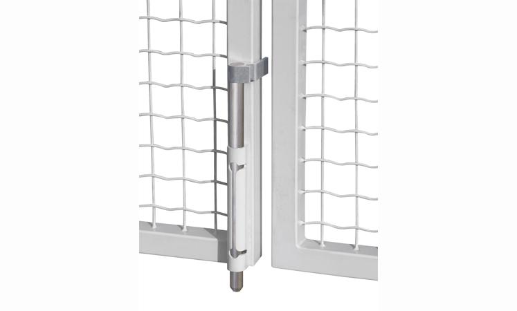 Стардартный вертикальный засов из алюминия со стержнем из стали горячей оцинковки. Засов снабжается инновационной системой крепежа Quick-Fix и автоматически блокируется между створками.