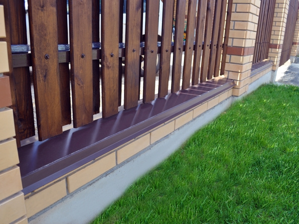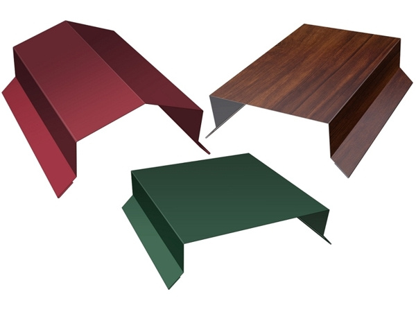 В ассортименте представлены парапетные крышки двух форм — прямые и угловые. Для отвода стекающей воды в обоих формах предусмотрены капельники, разведенные в разные стороны.