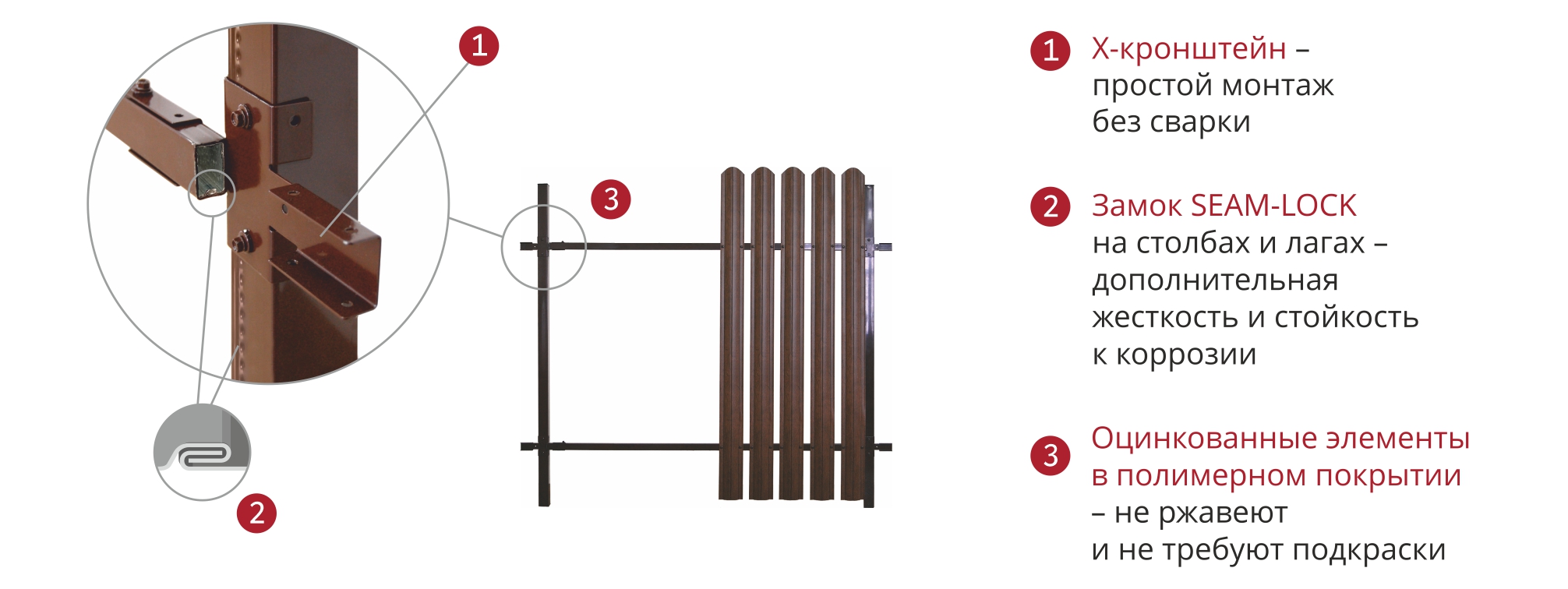 Благодаря этой системе сохраняется отличный внешний вид забора на весь срок службы.