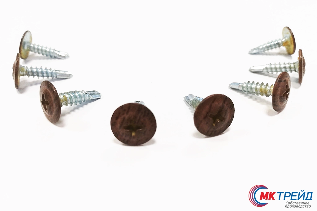Саморезы с покрытием под тёмное и светлое дерево идеально подойдут для крепления металлического штакетника или профнастила с покрытием, имитирующим дерево.